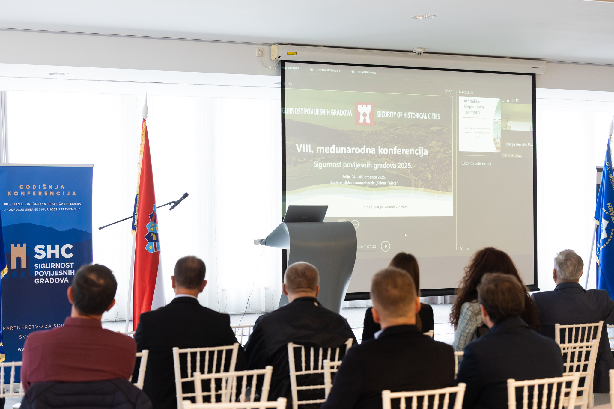 Drugog dana konferencije „Sigurnost povijesnih gradova 2025.“ u hotelu Salona Palace u Solinu fokus je bio na modernim sigurnosnim praksama, izazovima korporativne i urbane sigurnosti te razmjeni iskustava između stručnjaka iz različitih sektora – od gospodarstva i infrastrukture do akademske zajednice i javnih službi.